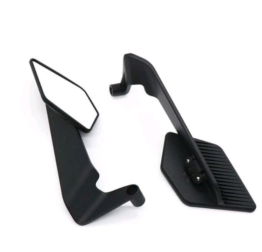 This product is a set of universal motorcycle rear view mirrors, commonly known as « aero mirrors » or « winglet mirrors ». They are designed as an aftermarket accessory to enhance both the aesthetic and aerodynamic performance of a motorcycle.